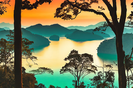 Beautiful reflection of rainforest with sunrise