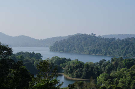 Green lake and rainforest tropical trees in Kuala Kubu Bharu, Malaysia.