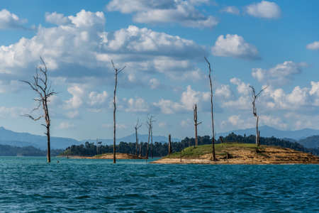 Adventure at Khao Sok, National Park, dead tree Postal. Asia exotic lake.