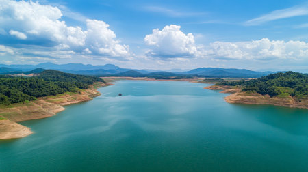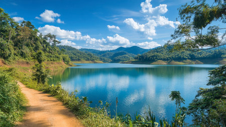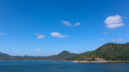 Mountain, lake and blue sky with white clouds in Thailand