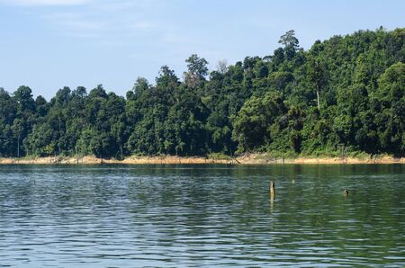 Kenyir lake lake with beautiful rainforest tropical jungle. Scenic landscape view. Located in Terengganu, Malaysia.