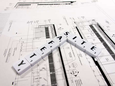 Detail view of architectural and structural construction drawings. Landscape format.