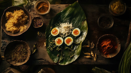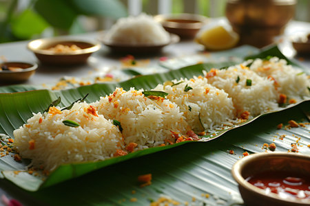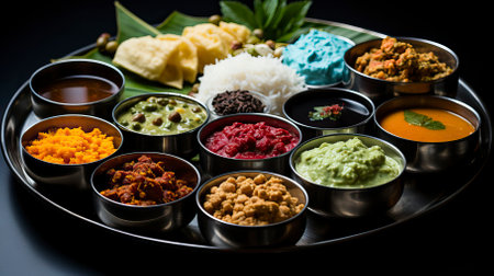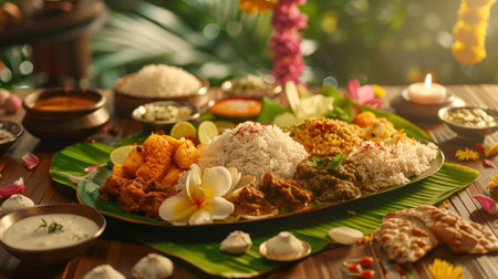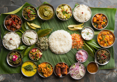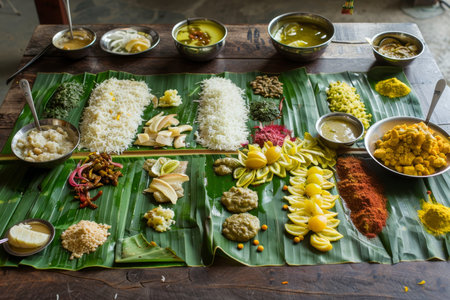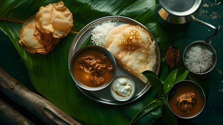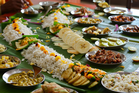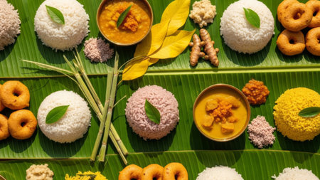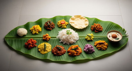 Cultural culinary traditional delight onam feast served on banana leaves in India