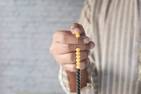 muslim man praying during ramadan, Close up