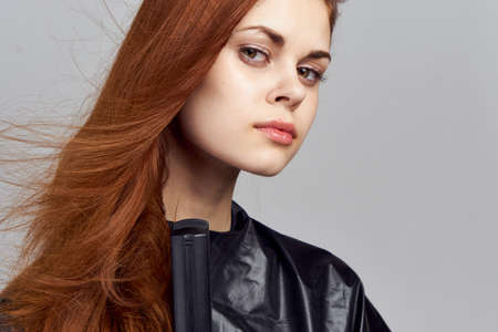 Young woman holding a curling iron, a hairdresser.
