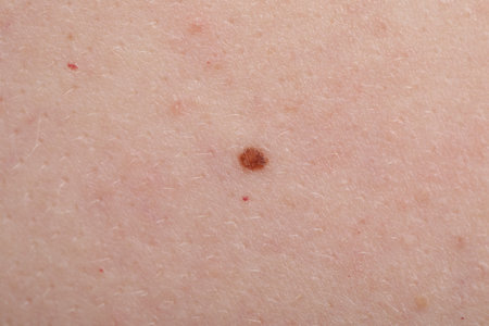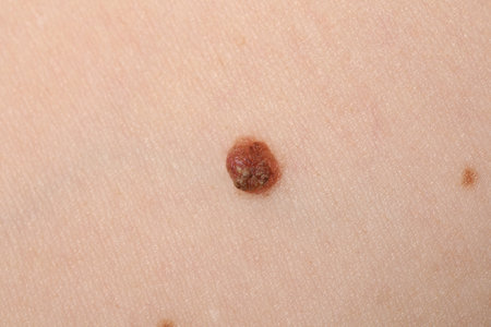 Nevus or mole on the human body close-up. Skin cancer, keratosis or melanoma on the skin.