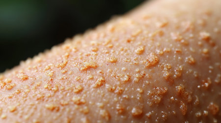 Close-up of textured skin revealing fine details of bumps and moisture under natural light in a serene outdoor setting. Generative AI