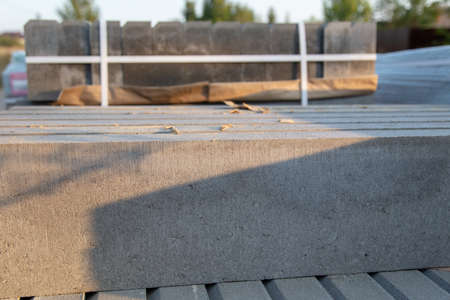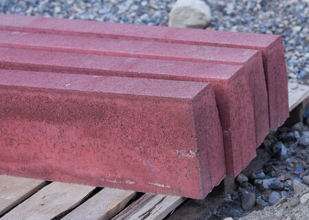 large and long concrete curbs in the package at the construction site of the new road