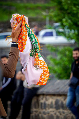 8 May 2022 Diyarbakir Turkey. People playing halay with drum and zurna on ten eyed bridge