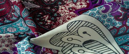 Background texture. cotton women scarf black and white pattern on one side of the scarf and color paisley pattern on the other side