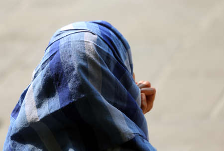 A hijab wrapped around a womans face its light fabric dancing in the wind like a delicate butterfly