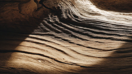 Explore the intricate textures and natural patterns found on a wooden surface, illuminated by soft light and shadows, perfect for artistic and nature-themed projects.