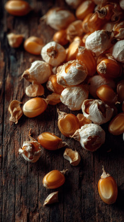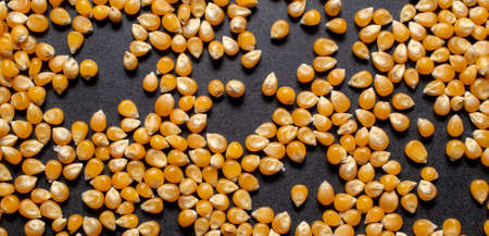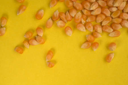 Organic Popcorn Kernels seeds macro portrait, yellow background