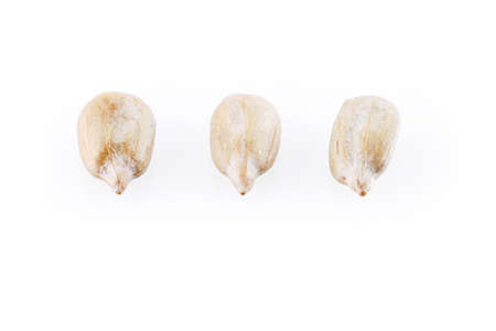 Peeled Sunflower seeds isolated on white background. Top view. Close-up