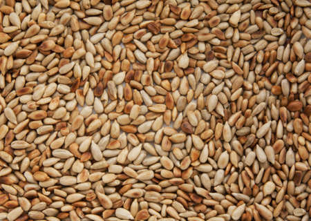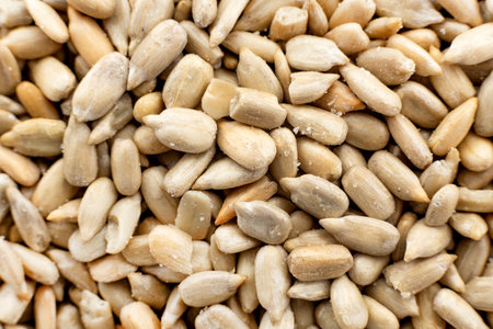 Background of peeled sunflower seeds close-up. Seeds. View from above
