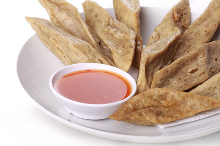 Traditional Indonesian Food : Fried Otak Otak is a Southeast Asian fish cake made of ground fish meat mixed with Chili Sauce