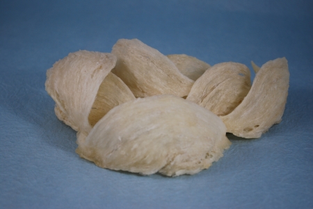 The nest of Edible-Nest Swiftlet, raw edible bird's nest materials for tradition chinese medicine. Edible nest soup is popular at Hong Kong, Taiwan, China and Southeast Asia. Selective focus and free space for text. Edible bird's nest on white background.