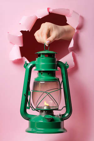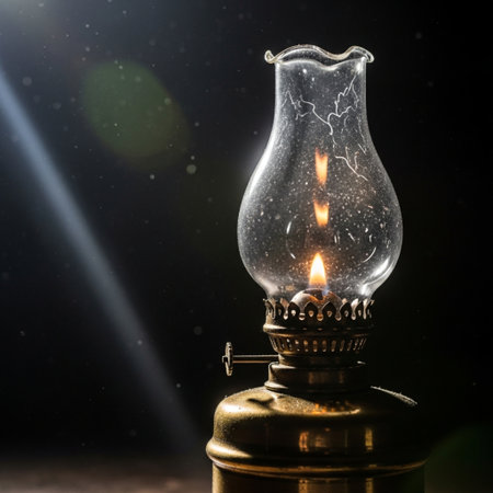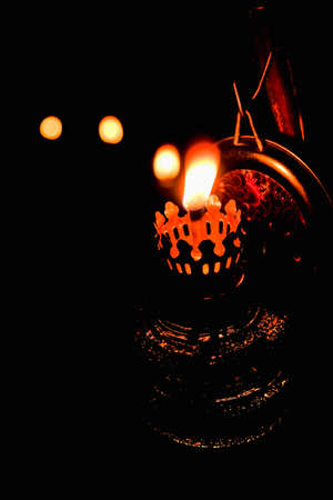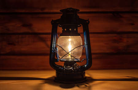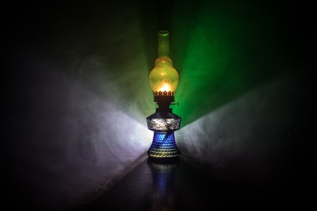 Oil Lamp Lighting up the Darkness or Burning kerosene lamp background, concept lighting