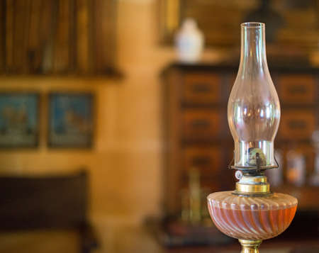 still life with kerosene lamp on wooden table,Vintage oil lamp, Vintage kerosene lamp