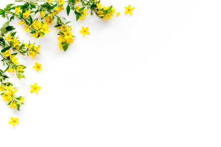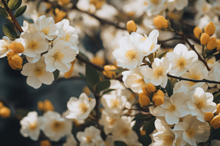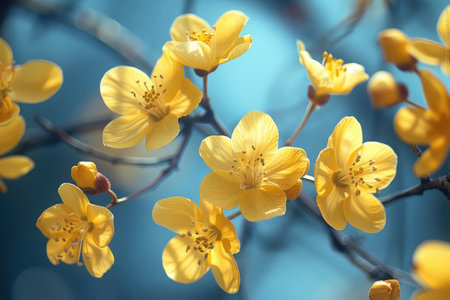 Beautiful yellow flowers blooming on tree branches in spring time.
