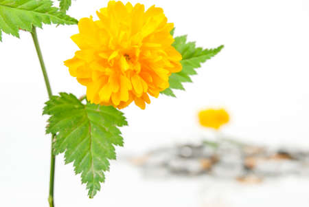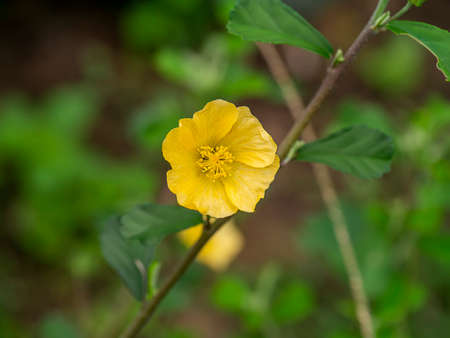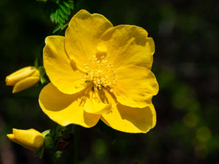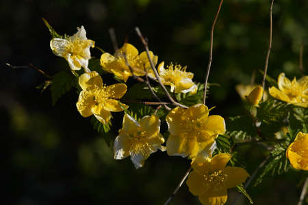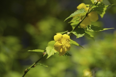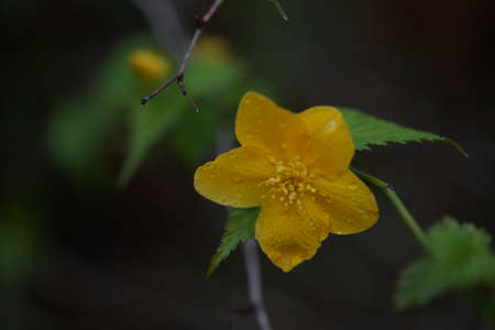Japanese kerria flowers. Rosaceae deciduous shrub. It grows in swamps and shades of trees and produces many yellow flowers from April to May.