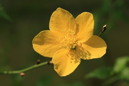 Kerria japonica japanese rose spring single yellow flower deciduous bloom blossom blooming