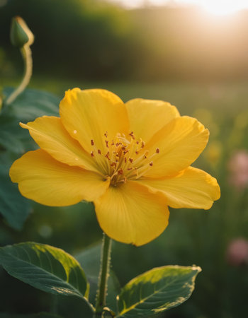 A stunning close-up of vibrant yellow flowers bathed in warm sunlight, creating a soft, dreamy ambiance. Perfect for nature and decor themes.