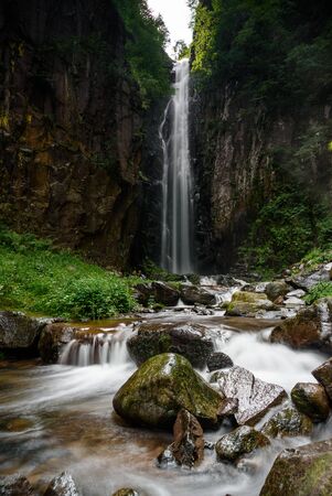 Beautiful waterfall in the green forest. Long exposure, long exposure.