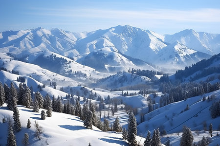 Snowy Mountains and Forests Outdoor Natural Landscape