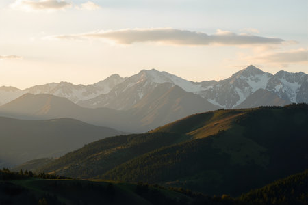 Mountains at sunset sky in Almaty, Kazakhstan, Central Asia