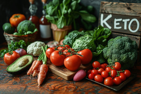 Fresh vegetables and organic food ingredients for low-carb ketogenic diet.