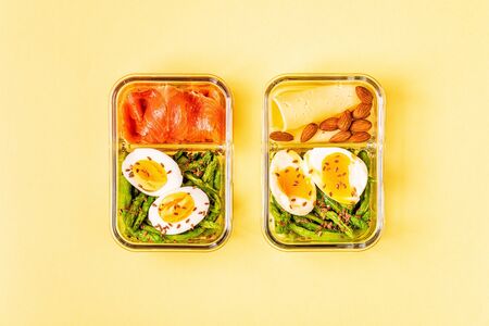 Healthy balanced lunch box, ketogenic diet lunch, home food for office concept.