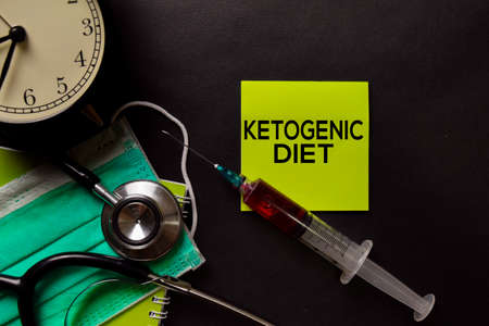 Ketogenic Diet text on top view black table with blood sample and Healthcare/medical concept.