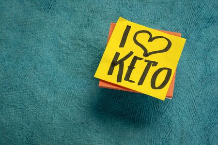 I love keto - ketogenic, high fat diet and lifestyle concept - handwriting on a reminder note