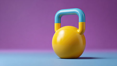 Bright yellow kettlebell stands out against a colorful background, symbolizing fitness and energy. Perfect for promoting exercise themes and healthy lifestyles.
