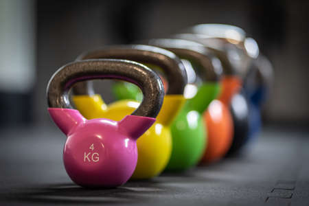 Kettlebells in a fitness hall. Sport and healthy lifestyle concept.