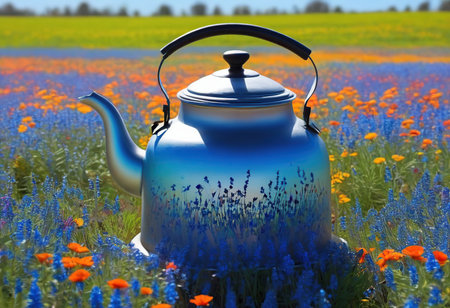 Boiling tea on stove, handle hot generated by artificial intelligence