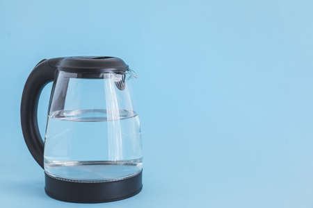 A polished electric kettle sits against a simple neutral backdrop, highlighting its sleek design and practicality for boiling water. Ideal for tea or coffee lovers.