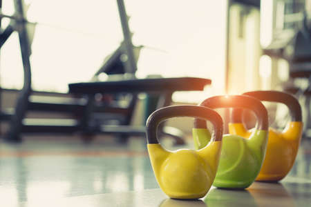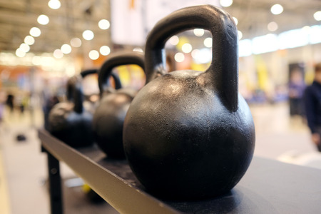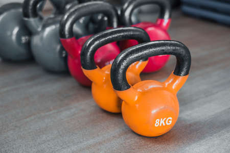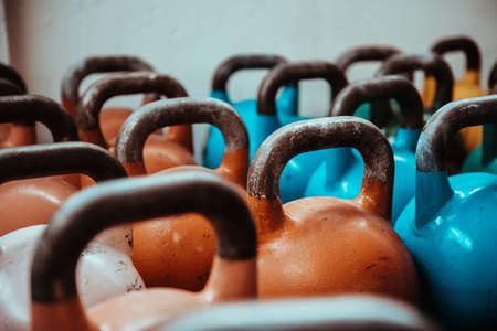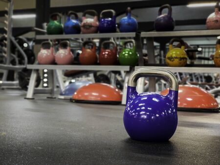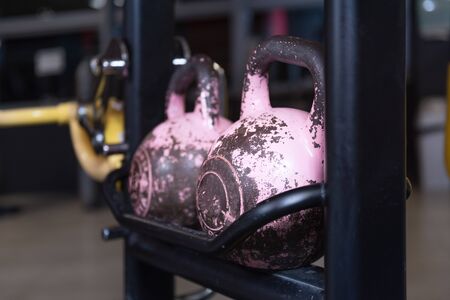 Kettlebells in a fitness club, closeup of photo