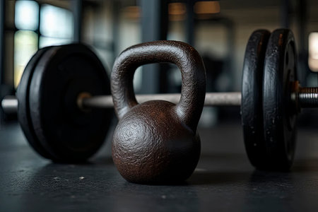 A close-up shot of gym equipment, such as dumbbells, resistance bands, or kettlebells, highlighting the variety of tools available for different workout styles. Generative AI