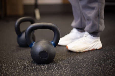 Close up of kettlebell at the floor in the gym