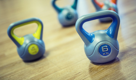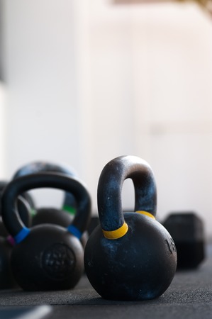 Kettle bells on the floor in the gym