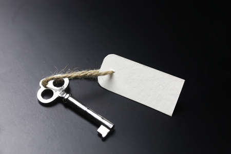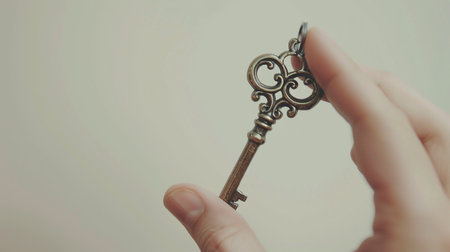a vintage metal key with an ornate design sits on a plain surface, offering space for text or design