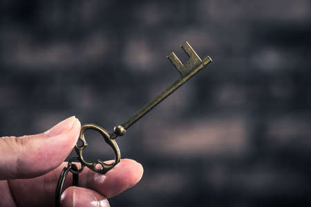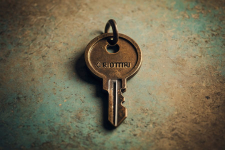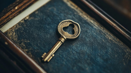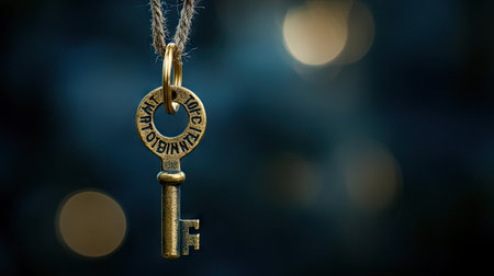 An antique golden key resting on a dark, mysterious background, representing unlocking new paths, security, and hidden mysteries.