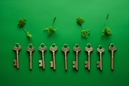 Unlocking Fresh Start: Vibrant Key Set on Emerald Backdrop -- AR 3:2