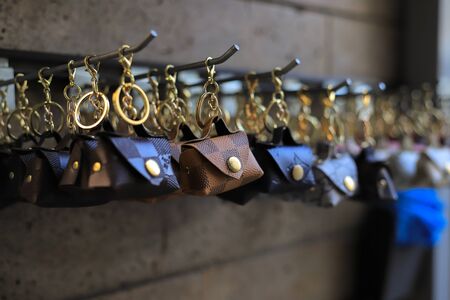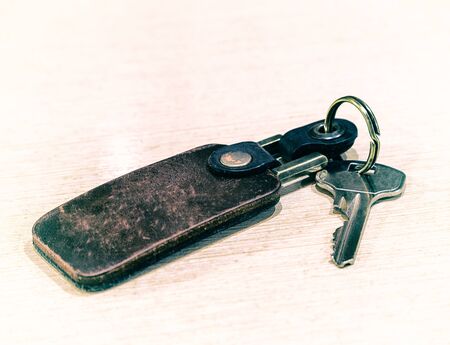 rectangular key ring with a key ring, leather, key, retro, vintage