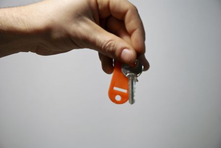 man in a shirt holding the keys to the new apartment, home, or house on his finger. isolated focus