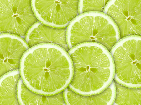 Abstract green background with citrus-fruit of lime slices. Close-up.