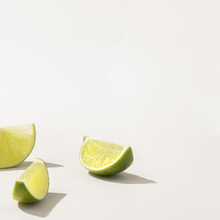 slices lime fruit pattern with side position provides copy space for text. background concept isolated white