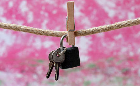 A closeup selective focus shot of grey locks on a metal line - perfect for background